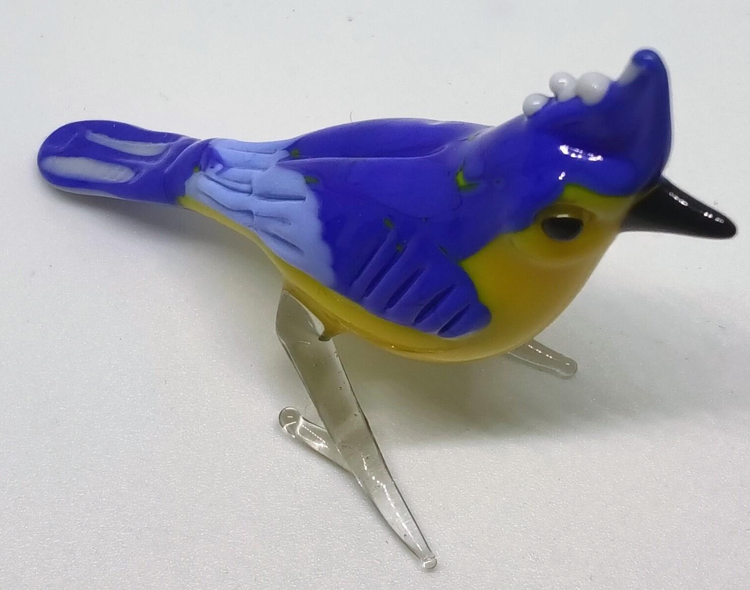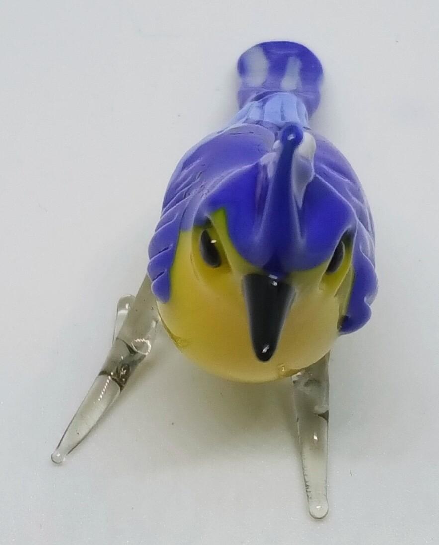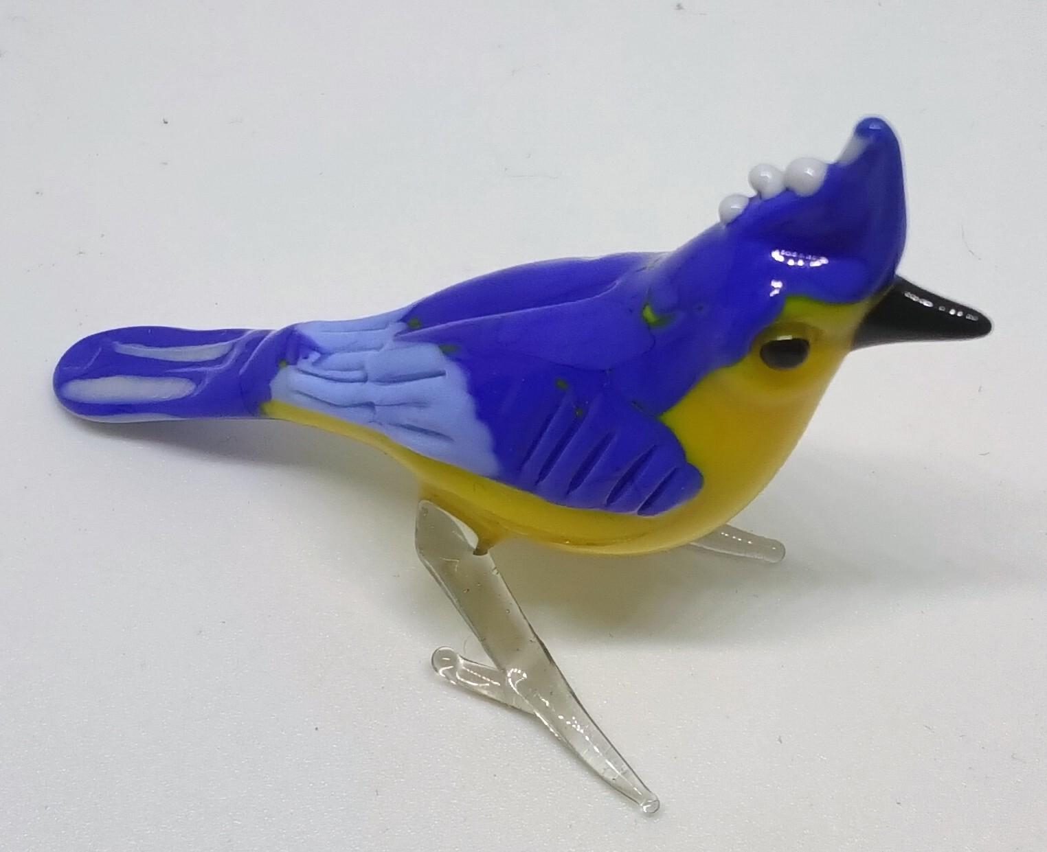 El Yapımı Mavi ve Sarı Renkli Camdan Papağan
