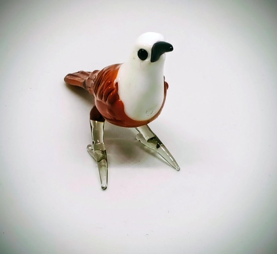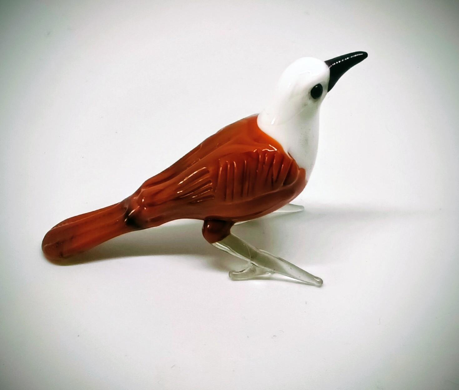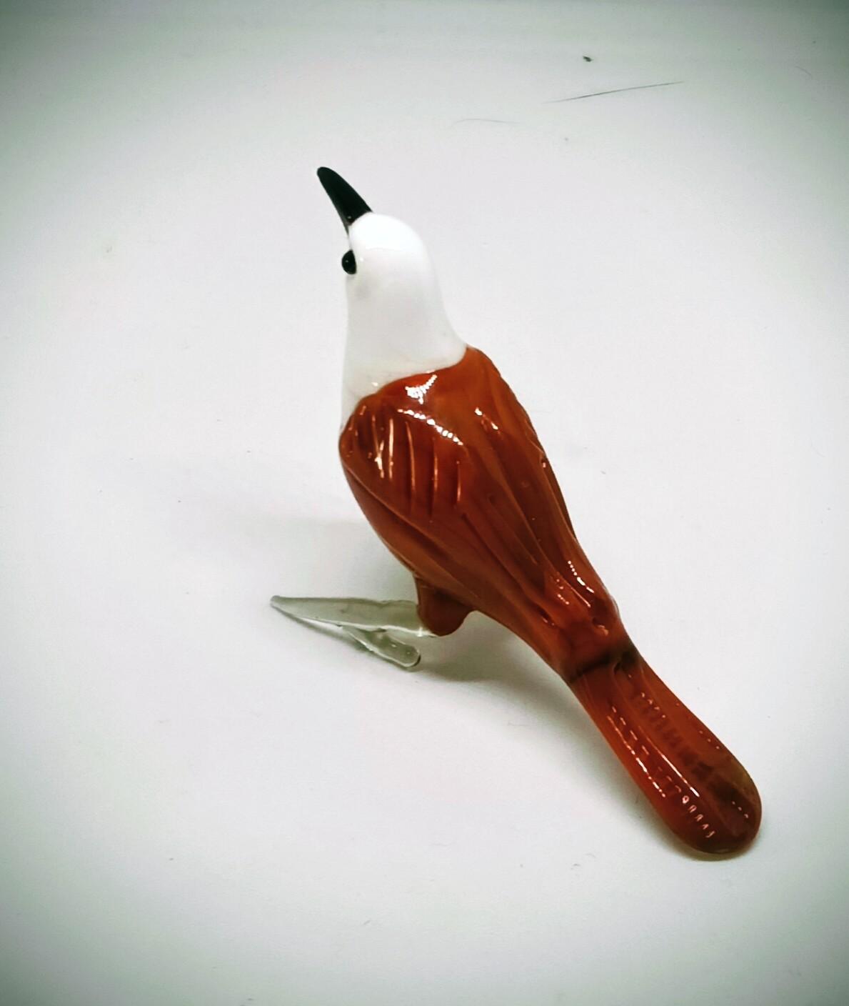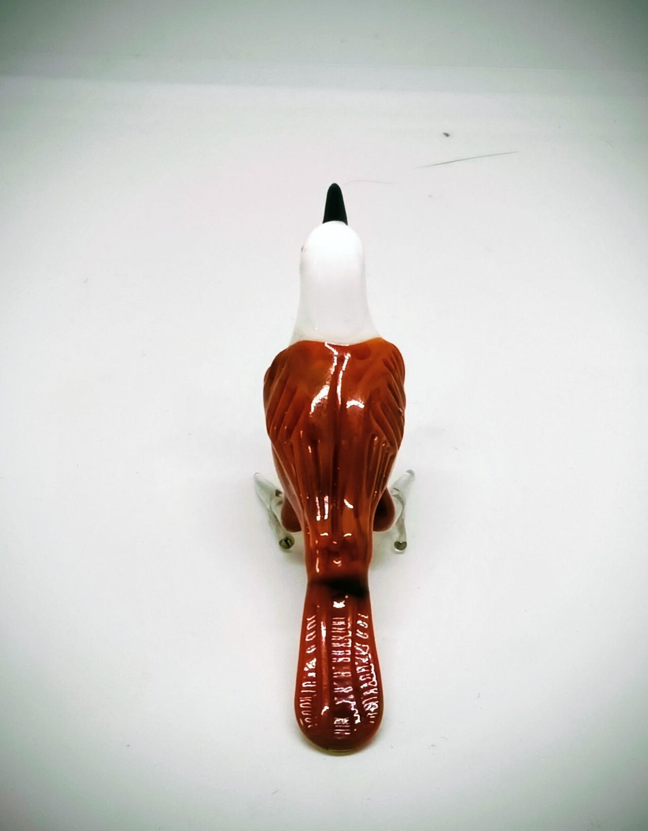 El Yapımı Murano Camı Kahverengi Vücudu Olan Beyaz Başlı Kuş Biblosu (1988)