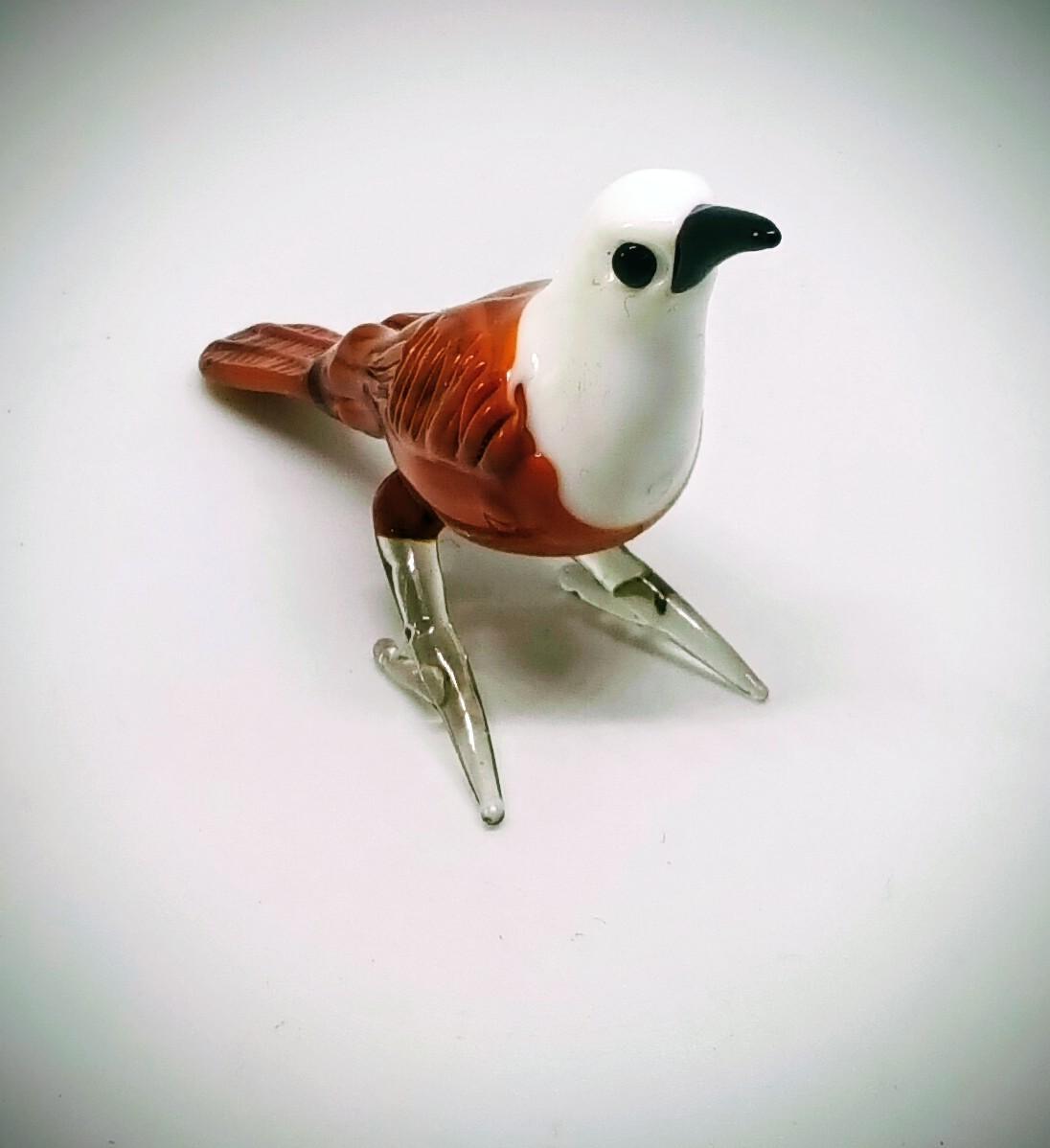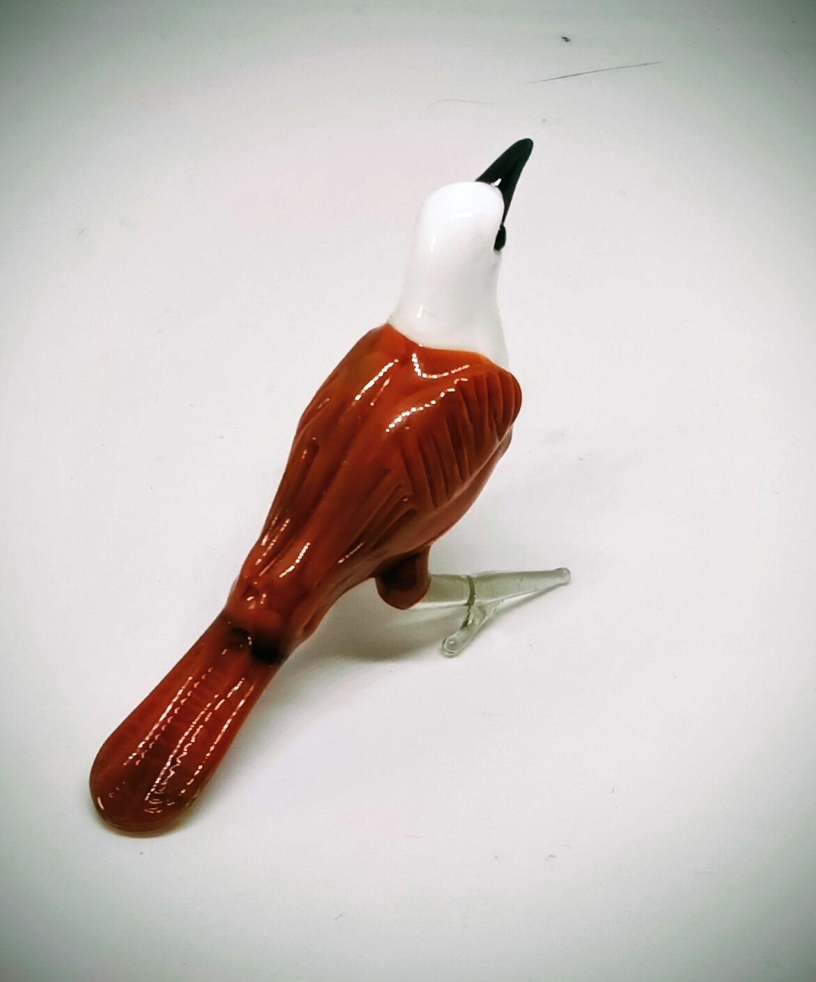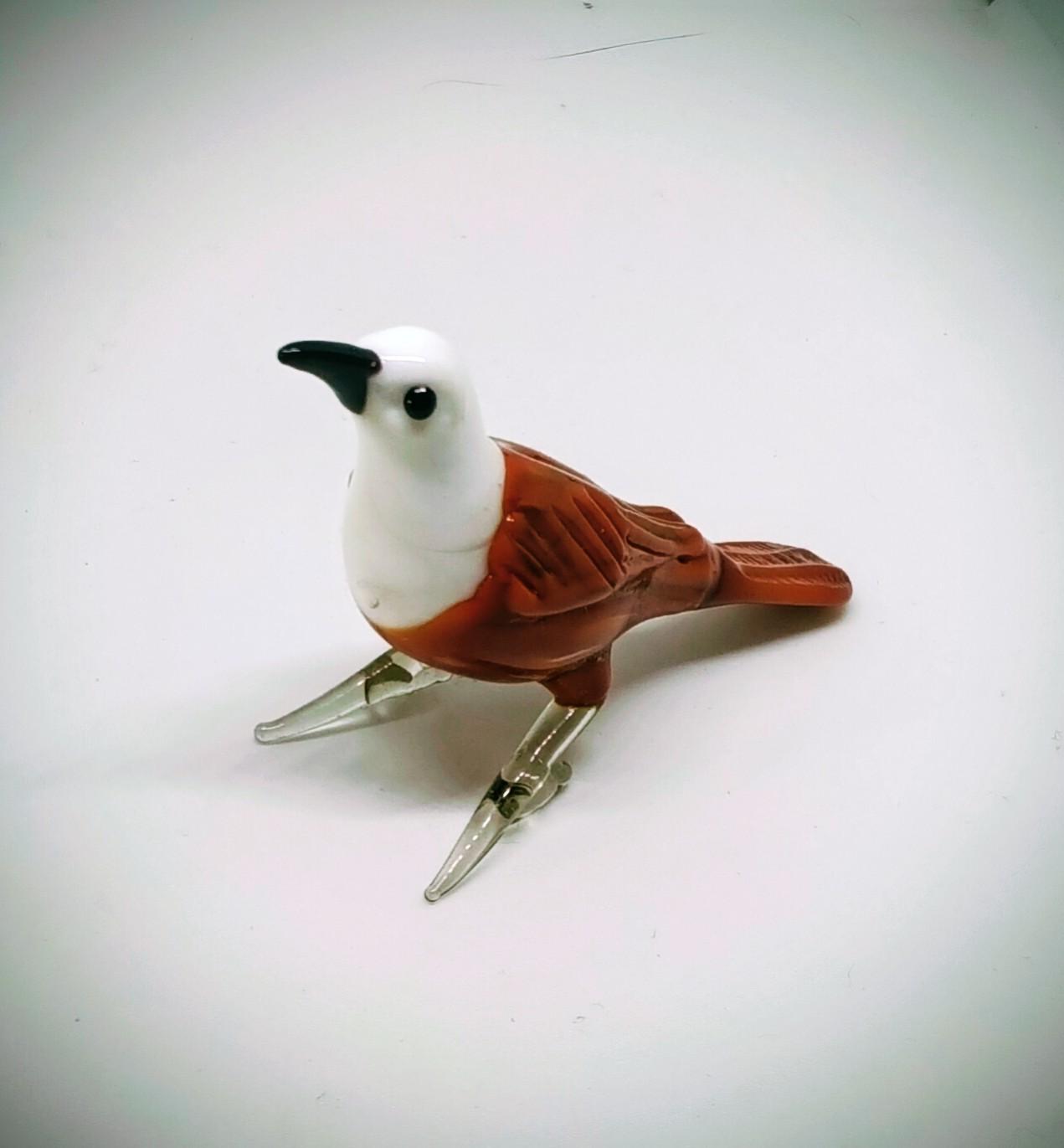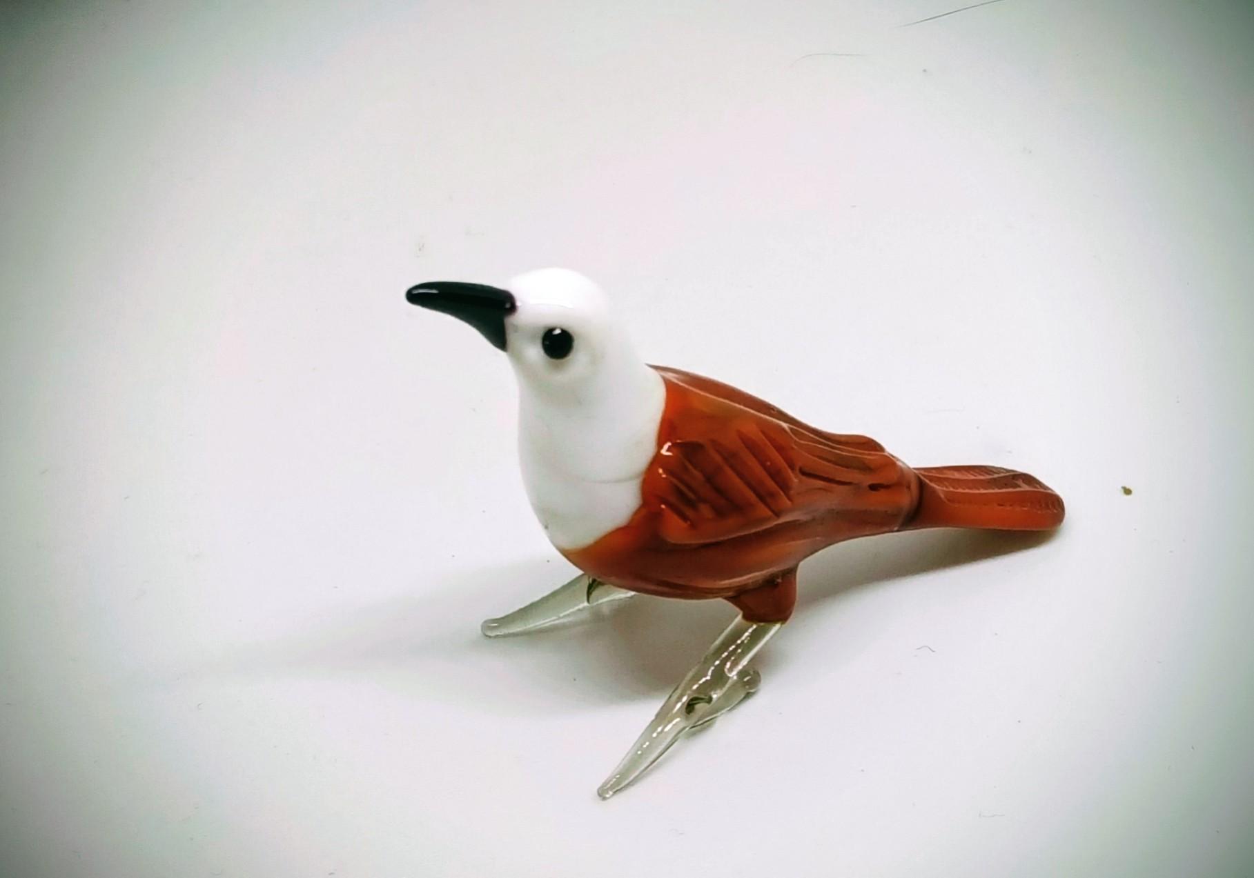 El Yapımı Murano Camı Kahverengi Vücudu Olan Beyaz Başlı Kuş Biblosu (1988)