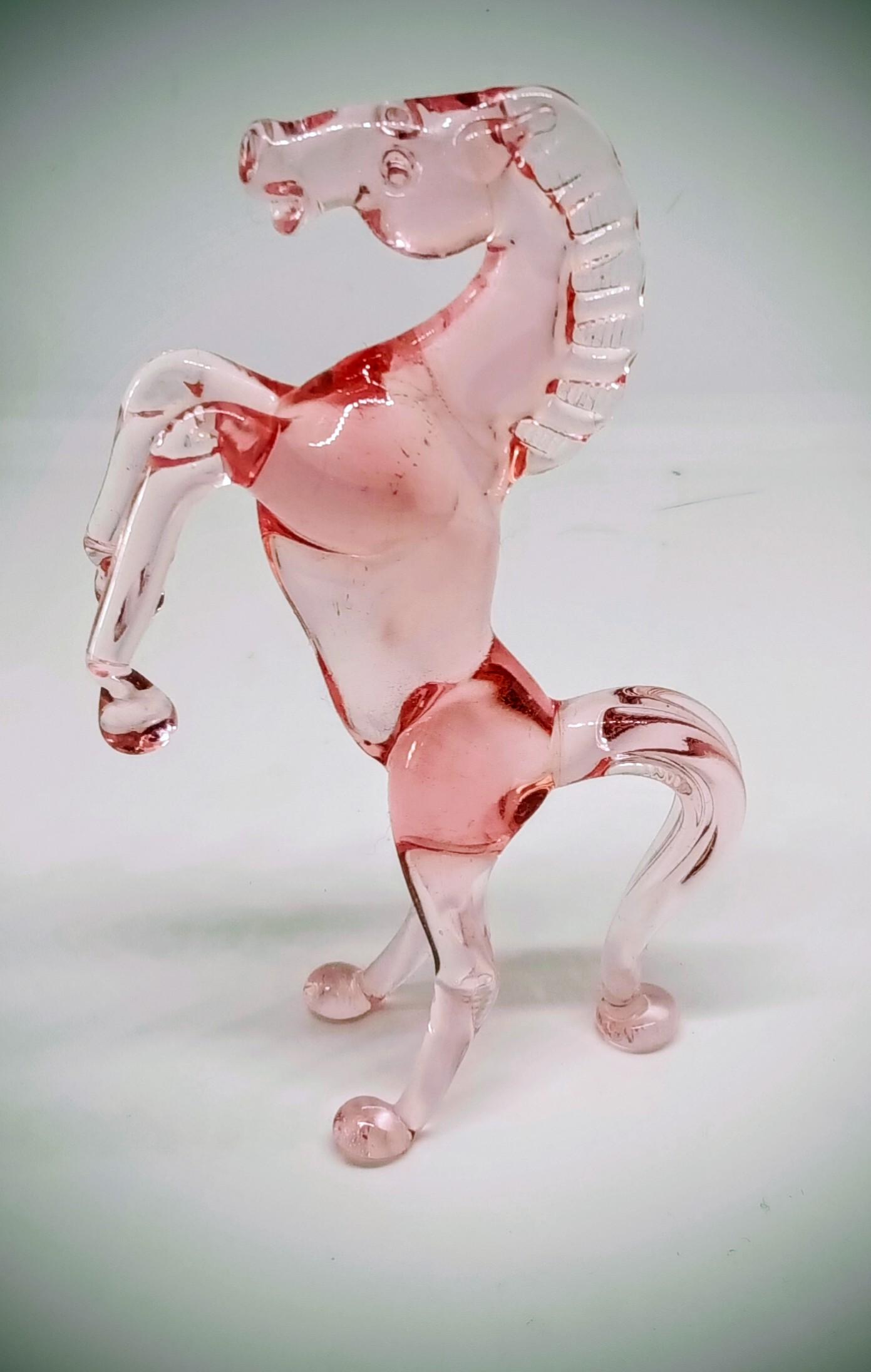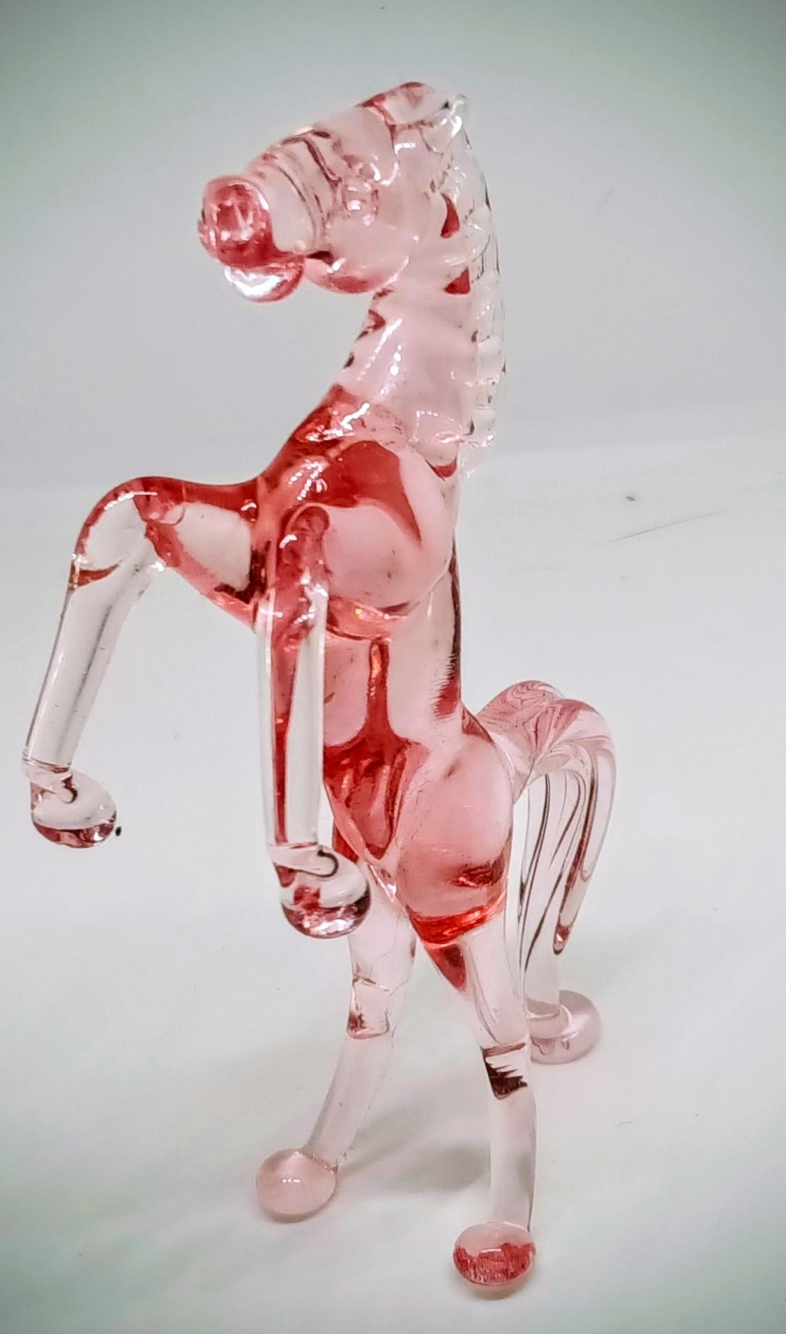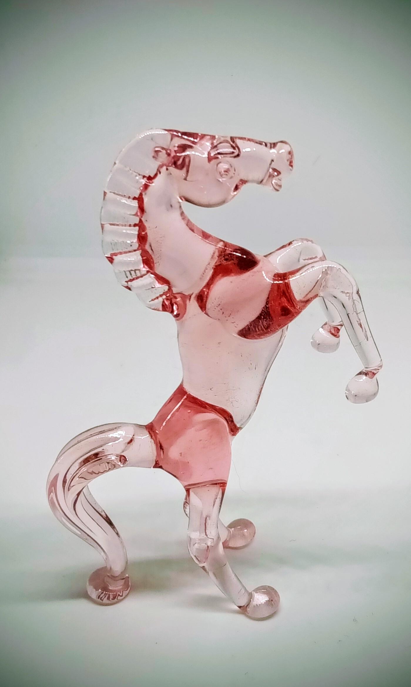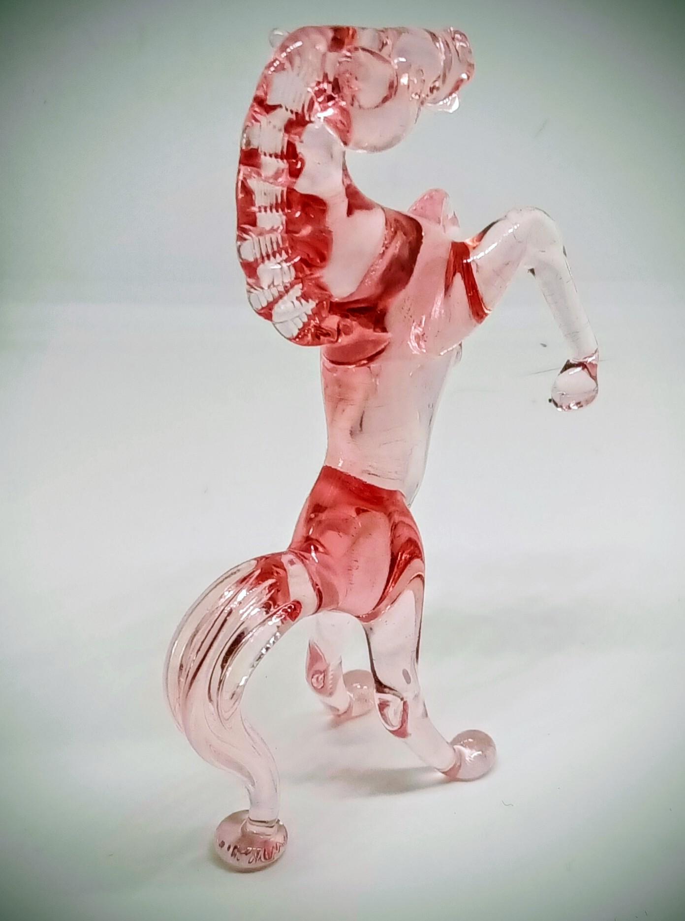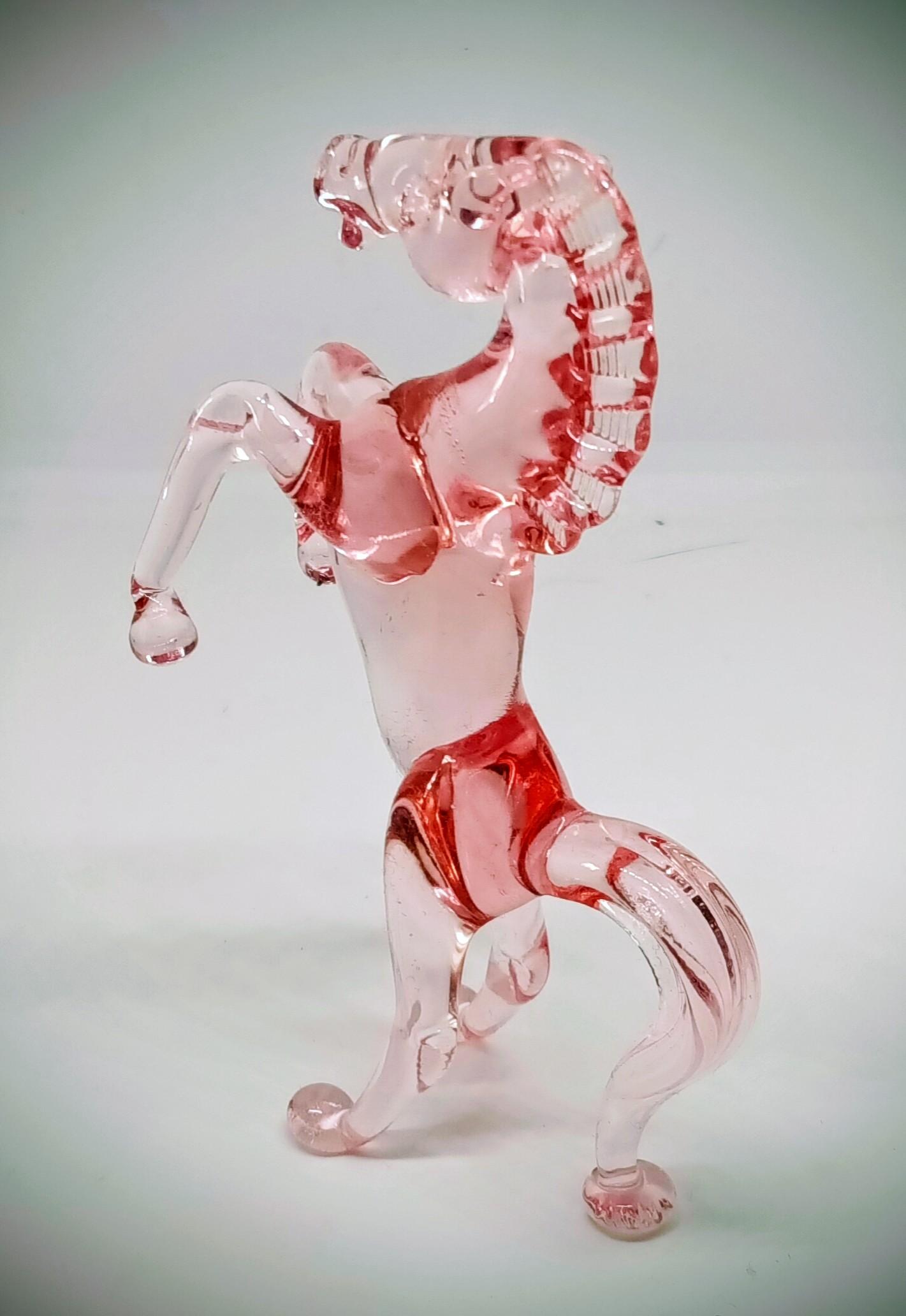 El Yapımı Murano Camından Yapılmış Pembe At Biblosu